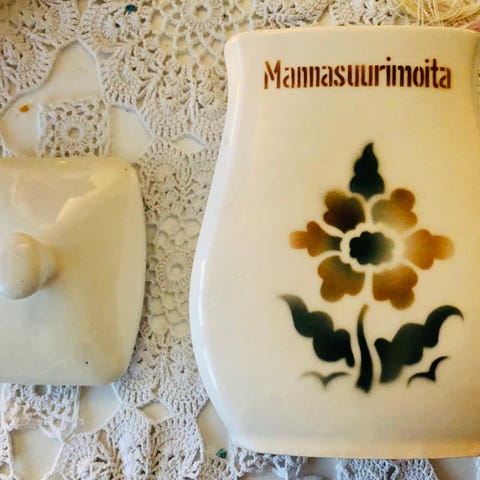 Arabia Ruskeakukka-sarjan Riisisuurimoita-purkki,EG-malli