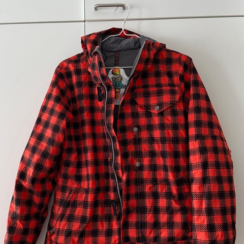 Hyväkuntoinen Burtonin lumilautailu/ laskettelutakki, jossa on paljon taskuja.