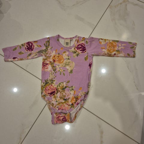 Kaiko lasten body sinisessä värissä, koko 74, unisex-malli. Valmistettu musliinikankaasta, jossa on painettu lehtikuvio. Bodyssä on pitkät hihat ja tuplanepparikiinnitys haarassa helppoa pukemista varten. Väri ja kuosi hieman uudesta haalistunut. Kuvatessa huomasin takana pienen vaalean laikun, voi lähteä pesussa pois.