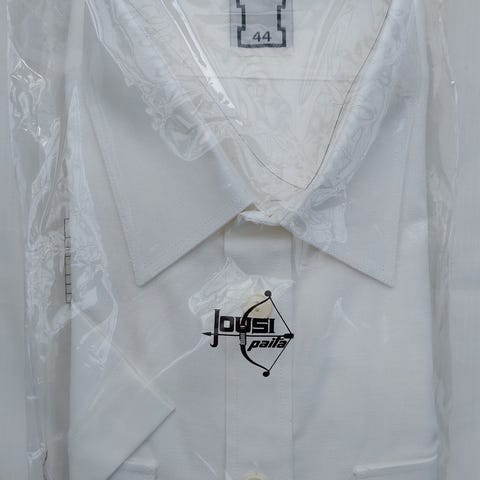 Myydään käyttämätön SA-kauluspaita m/58, koko 40 tanakka, väri maavoimien harmaa, pitkähihainen.