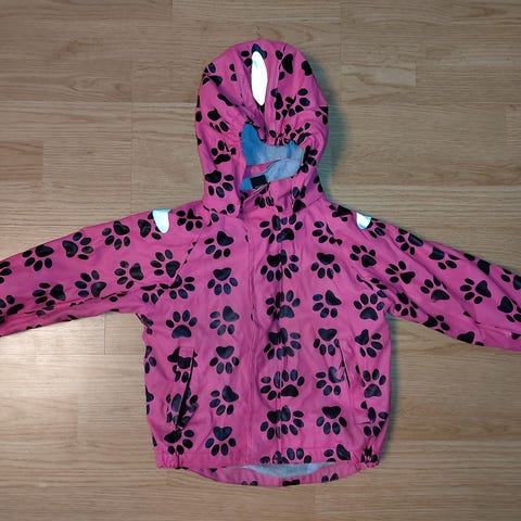 Lotta & Lassi lasten takki, koko 92, punainen väriltään. Takissa on hupullinen malli ja sydänkuvioitu kangas. Hyvä kunto.