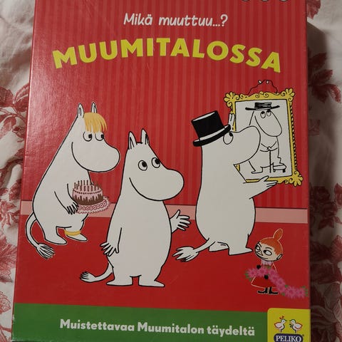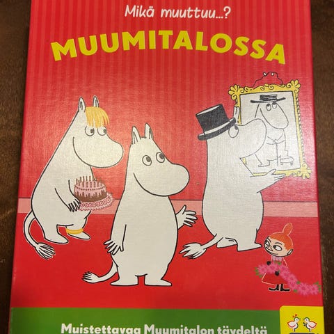 Mikä muuttuu muumitalossa -lautapeli. Hyvä kunto, pieniä kulumia jossain osissa ja laatikossa. Kaikki osat tallessa.