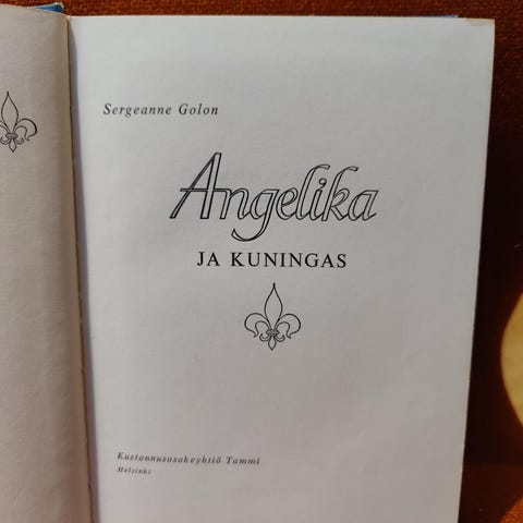 Angelika ja Rakkaus on kirja, Kovakantinen Kirja on sidottu sinisellä kannella, jossa on koristeellisia yksityiskohtia. Kansipaperi puuttuu. Painovuosi 1964, 1 painos, kustantaja Tammi.