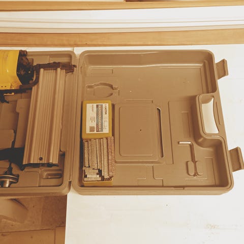 Yhdistelmänaulain. Ollut varalla mökkiremontissa. Ammuttu muutama naula.