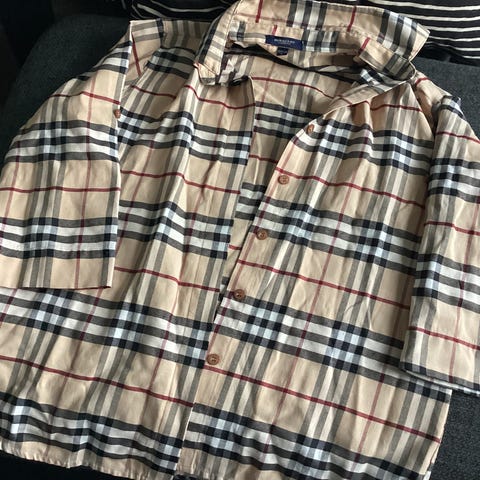 Yksi paidoista on alkuperäinen Burberry (koko M/L), ja kaksi muuta ovat elegantteja merkkituotteita, joista toinen on koko L ja toinen DAKS-merkkinen koko M.
