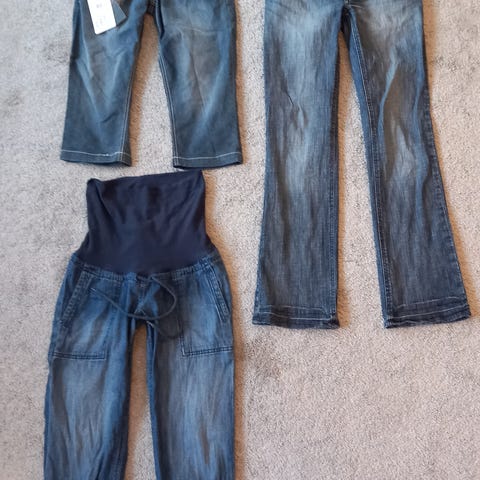Tyylikkäät äitiysfarkut. Kokoa voi säätää sivunapeista. Koko on 36, mutta tummemmat farkut ovat hieman suuremmat kuin toiset. Käytin farkkuja raskauden 5. kuukaudesta synnytykseen asti. Laadukkaat LCW-merkkiset tuotteet, ostettu Turkista luotettavalta brändiltä. Myyn ne todella edullisesti.