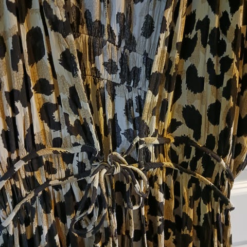 Erikoinen ja kauniin värinen avonainen liukaspintainen paita. Kimono tyylinen. Edessä taskut. Parissa kohtaa langanpurkaumaa, muttei hypi silmille. Koko ilmeisesti 40/42. Kirjoitettu pesulappuun..