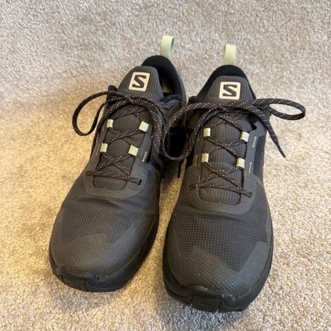 Salomon vaelluskenkä koko 41, väri vihreä. Kenkä on suunniteltu vaelluskäyttöön ja siinä on kestävä pohja, joka tarjoaa hyvän pidon erilaisilla alustoilla. Materiaali on hengittävä ja kestävä, kengissä hyvä pito liukkaalla.
