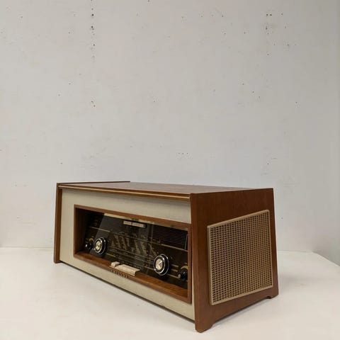 Normaalista poikkeava vintage levysoitinkaappi myytävänä. Toimintaa ei ole testattu. Mukana varaosia ja puhdistus tarvikkeita. Takakulmassa korjaus. Muilta osin kunto hyvä. Maadoittamaton pistoke. Toinen johto poikkaistu.