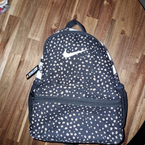 Myydään koulureppuna käytetty Niken reppu. Edessä jotain tahraa, joka ei normipesussa lähtenyt, vaatinee tahranpoistoainetta.