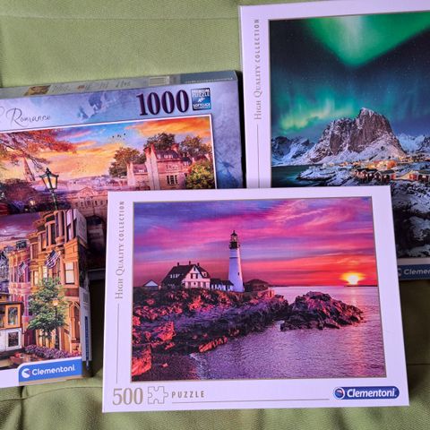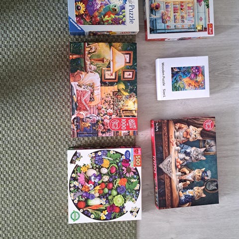 Viisi palapeliä myynnissä. Koko setti 25€, muuten 500 palaset 5€/kpl ja 1000 palaset 8€/kpl.