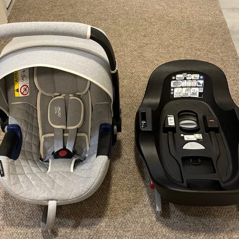 Britax Römer Baby i-Safe turvakaukalo telakalla. Käytettynä ostettu, eli parilla lapsella ollut. Ei tiputettu eikä kolaroitu. Pehmusteita löytyy. Vain haku Heikinlaakso, Hki.