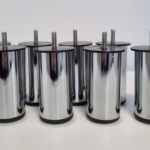 Metalliset sängyn jalat. 12cm korkeat. Hyvässä kunnossa. 8 kpl.