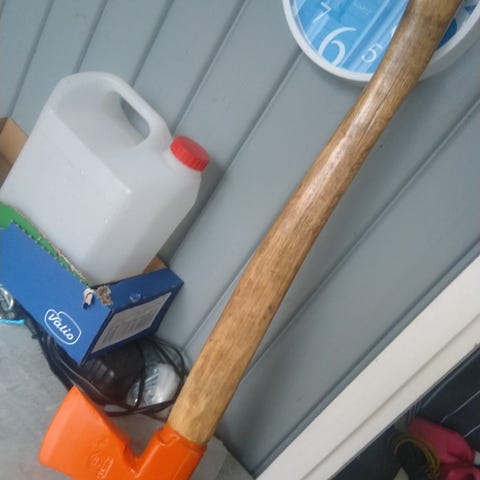 Kirves Made in sweden pit. 74 cm terä osuus hiottu ja maalattu oranssi.