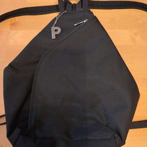Picard tumman ruskea nailon reppu. Pohjan koko 9, 5 x 20 cm. Korkeus 23,5 cm, leveys 20 cm, laukun ollessa kiinni lähtee kapenemaan 16 cm kohdalta ja kapein kohta päällä 8 cm. Olkahihnat säädettävissä 77,3 - 95 cm pituuteen. Repun olkahihnat saa vetoketjulla yhteen. Repun edessä, takana ja laukun sisällä vetoketjullinen tasku. Maksanut kaupassa 80 EUR.