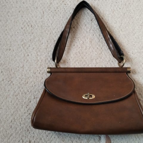 Rottinkilaukku, n . 37 x 25 x 12. Amerikkalainen. Simpukoita ja helmiä, joista joku pieni helmi lähtenyt irti. Vuorikangas ja paljon taskuja sisällä.