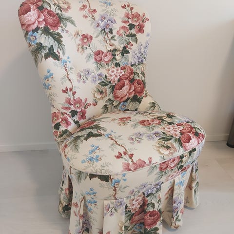Hienokuntoinen Vanha nojatuoli, korkeus/istuinkorkeus 75/43cm, halkaisija 53cm.