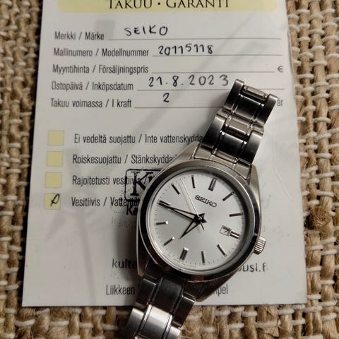 Hyväkuntoinen kello. Alkuperäinen pakkaus. Pari jatkopalaa rannekkeeseen!