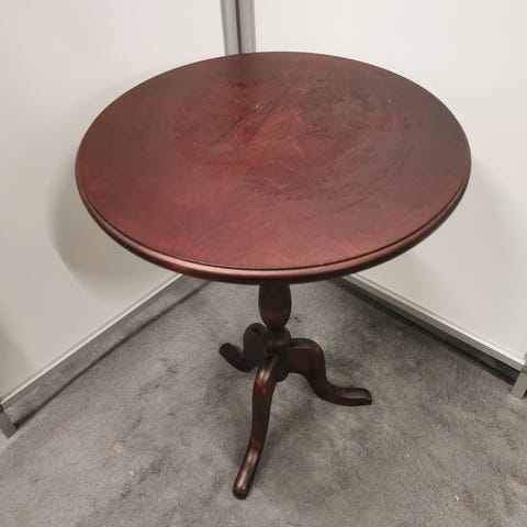 Pieni pyöreä puinen sivupöytä.