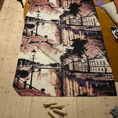 Myydään vähälle käytölle jääneet vallilan kukkameri verhot.nouto tai postitus.