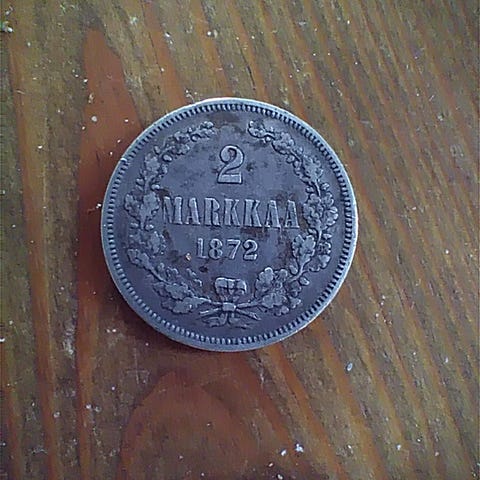 2 markan kolikko v. 1870. Kunto kohtalaisen hyvä mutta jnk verran tummunut.