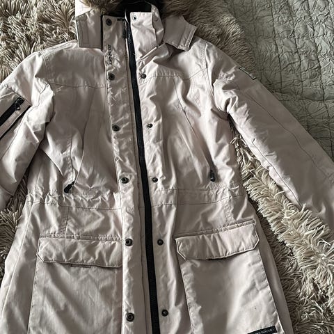 GAP Winter Woman Talvitakki mustassa värissä, koko XXS. Takki on pitkä ja valmistettu lämpimästä materiaalista, jossa on toppaus. Takissa on huppu, jossa tekoturkisreunus. Sopii naisten käyttöön kylmille säille. Selkäpuolella pari reikää, joista kuva.