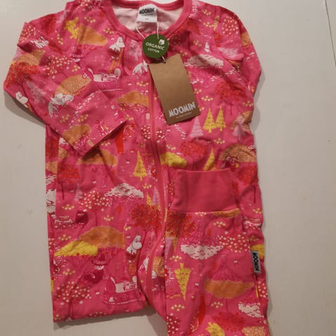 Muumi lastenvaatteet koko 98, väri kirjava. Unisex-malli, sopii sekä tytöille että pojille. Materiaali ei ole määritelty kuvista, mutta vaatteessa on Muumi-aiheinen kuosi.