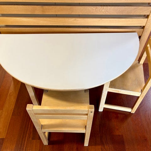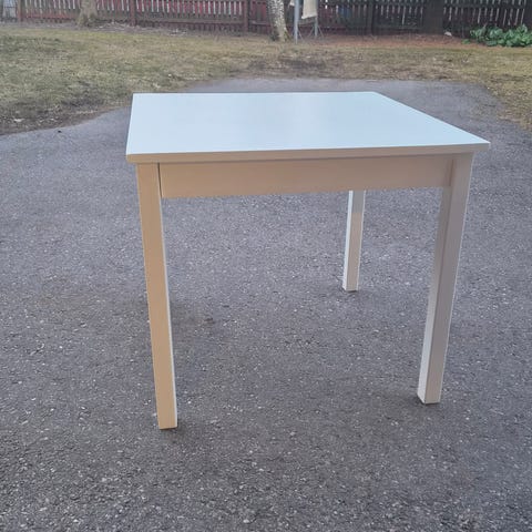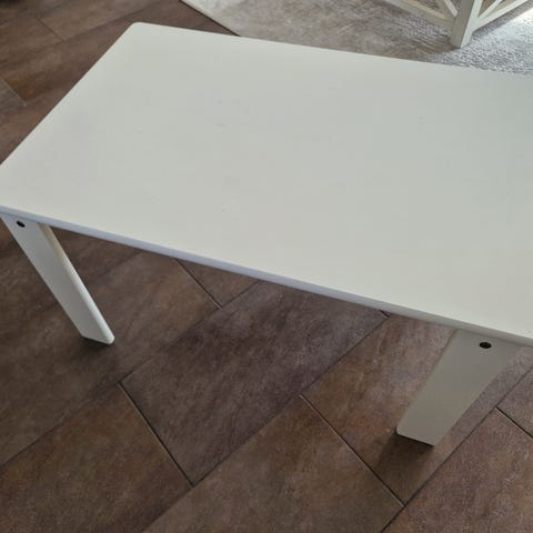 lasten pöytä, valmistettu puumateriaalista ja maalattu valkoiseksi. Pöydässä on kuusi vetolaatikkoita , jotka tarjoavat säilytystilaa. Pöytä sopii lasten käyttöön ja tarjoaa toimivan työskentely- tai leikkialustan. En pystyy mitata, meillä ei ole mittari! Arvioitu noin 90 leveys