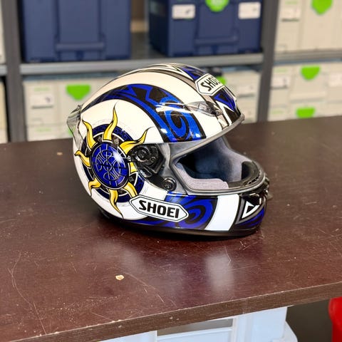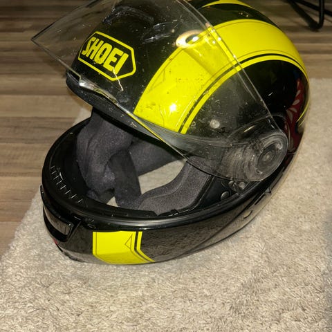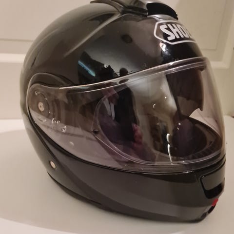Hyvässä kunnossa oleva moottoripyöräkypärä/kelkkakypärä. SHOEI-laatumerkki. Koko XL, mittoja voi kysellä.