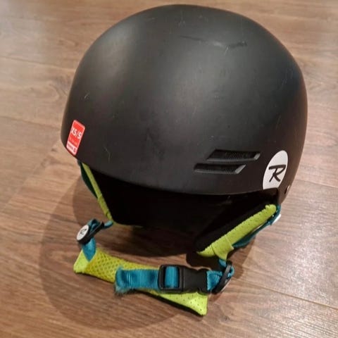 Hyvässä kunnossa oleva laskettelu kypärä.