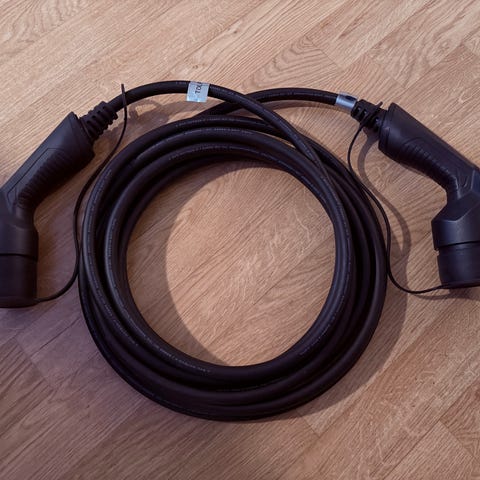 Latauskaapeli, jossa Tyyppi 2 - Tyyppi 1 liittimet, 16 ampeeria, 6 metrin pituus. Sopii mm. Mitsubishi outlander lataukseen.