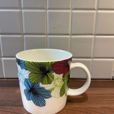 Veripalvelun koristelu Arabian Teema-sarjan mukiin. Muki on täysin ehjä ja erinomasessa kunnossa.