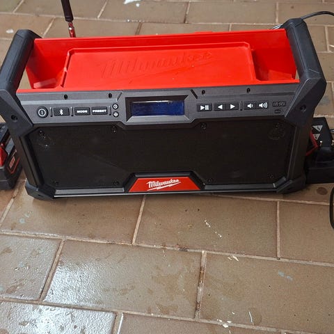 Myydään täysin toimiva työmaaradio, jossa lataa akut ja puhelimen sekä ääntä lähtee. Ei akkuja Voin lähettää tai kulkeutuu pääkaupunkiseudulle.