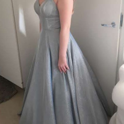 Myydään kerran käytetty, hyväkuntoinen vanhojentanssimekko. Väri turkoosinsininen.