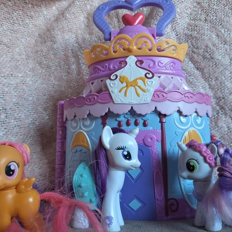 Sen mukana tulee Rarity-ponihahmo ja erilaisia asusteita ja huonekaluja.
