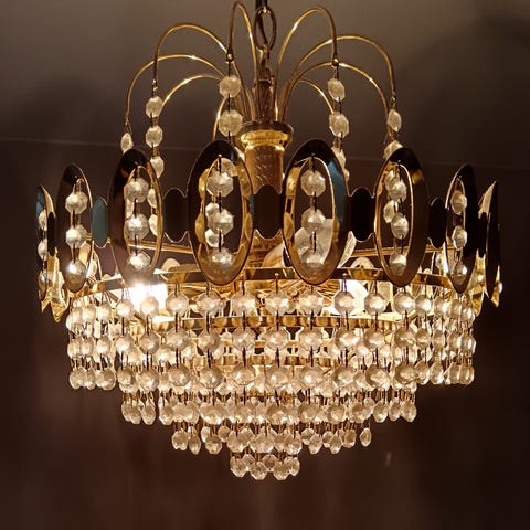 Kuvanmukainen kristallivalaisin. 4 valopistettä. Siisti ja ehjä.