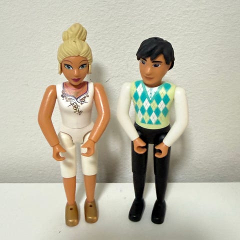 Hyväkuntoinen kylpysetti v. 2002. Osia 27, ja kiva tyttöhahmo. Ainoastaan pikkuriikkinen, litteä kruunu puuttuu. Ei ohjetta, mutta kulunut laatikko on.