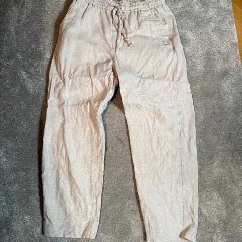 Zara Housut miesten koko S, väri valkoinen. Housut ovat kevyttä materiaalia ja niissä on joustava vyötärö, jossa kiristysnauha.
