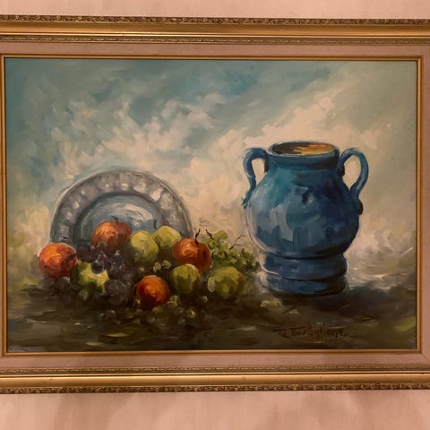 Signeerattu ja kehystetty vesiväriteos.