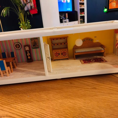 Nukkekoti (tapetit huonossa kunnossa)
