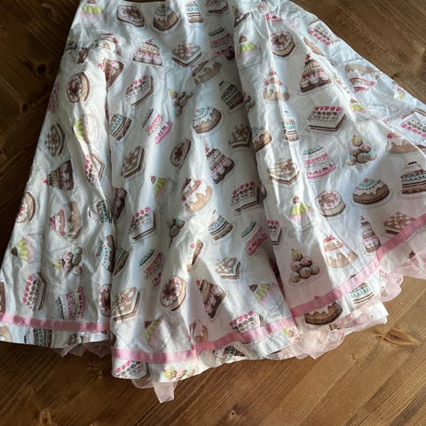 Suomalainen Zalekua-merkkinen juhlahame rusetilla. Taftikangasta. Pituus 40 cm.