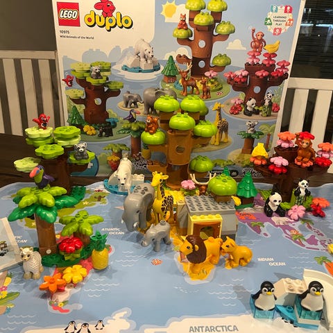 Lego Dublo My First -sarjan eläimet. Tullut uutena meille ja kaikki osat tallessa. Kurkkaa, jos torin 15cm paksuun peruspakettiin löytyisi muutakin :)