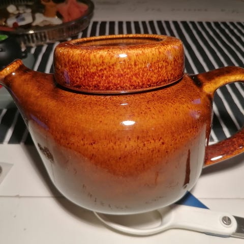 Söpö teekannu. Tori heitti tähän ilmoitukseen automaattisesti merkin, mutta tässä ei ole mitään merkintöjä, joten ei tietoa mikä on valmistaja. Todennäköisesti englantilainen kannu.