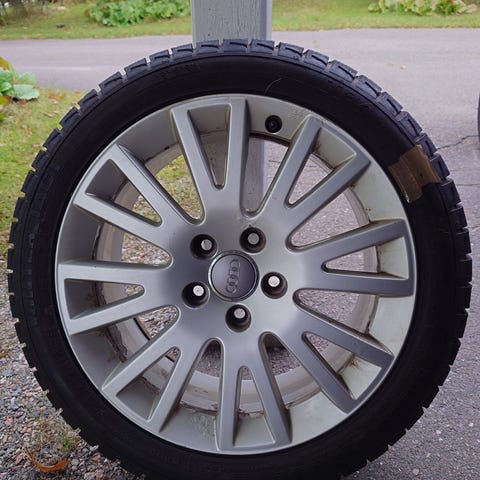 Tarpeettomana Audin 16" vanteet kesärenkailla. Pintaa tasaisesti 3-4mm.