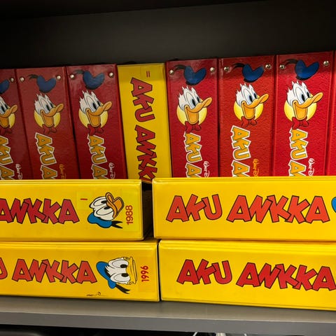 Aku Ankka -lehtikansioita, sisältävät lehtiä mukana. 4€/kpl. Myydään erikseen tai tarjoa setistä.