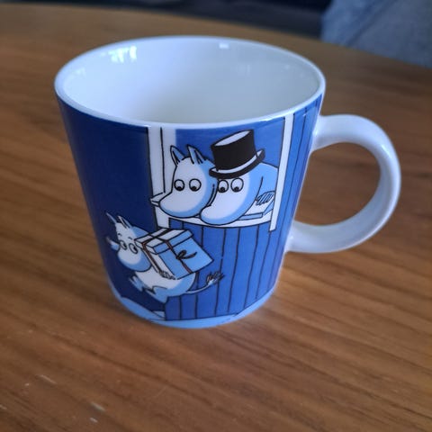 Myydään jouluyllätys muumimuki. Mukin reunassa ihan pienen pieni särö. Nouto Espoon Vanttilasta tai postikulut 10,90€ lisätään hintaan.