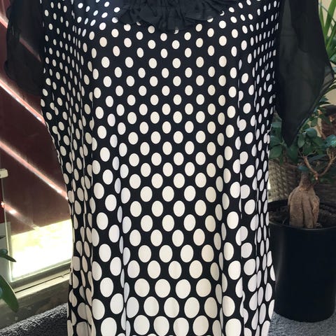 • ERFO-pusero, koko 44. Kevyt ja ilmava materiaali, pystysuorat raidat, rypytetty kaulus ja 3/4-hihat.