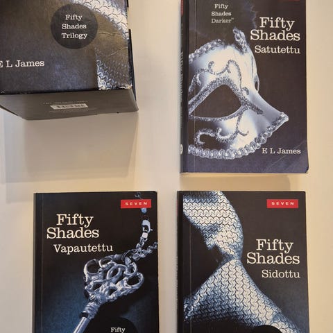 E.L. James Fifty Shades -kirjasarja sisältää kolme osaa: Sidottu, Satutetttu ja Vapautettu. Kirjat ovat suomenkielisiä ja painettu kovakantisina. Sarja kuuluu aikuisten fiktiokirjallisuuteen ja käsittelee romanttisia ja draamallisia teemoja.