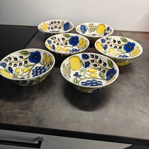 Myydän Arabian Paratiisi-sarjan tarjoilukulhot 50€/kpl. Kulhoja on 2 kpl joiden leveys 23 cm ja korkeus 7 cm. Kulhot ovat vähän käytettyjä ja todella hyväkuntoisia.