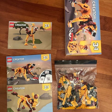 Koottuna ja ohjekirjoineen ,Lego 31112. Villi leijona.